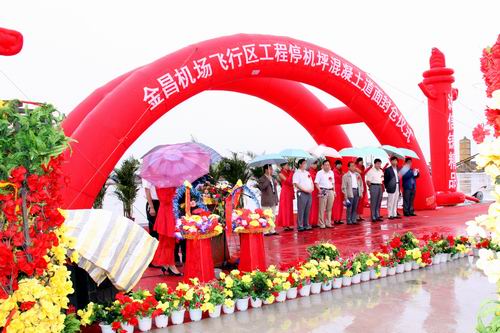 2010年8月20日上午10時,金昌機場飛行區(qū)停機坪混凝土道面工程順利封倉。甘肅省交通運輸廳、金昌市政府、甘肅機場建設投資管理公司、甘肅機場項目建設指揮部及施工單位等有關單位領導現(xiàn)場見證了道面工程順利封倉的時刻。