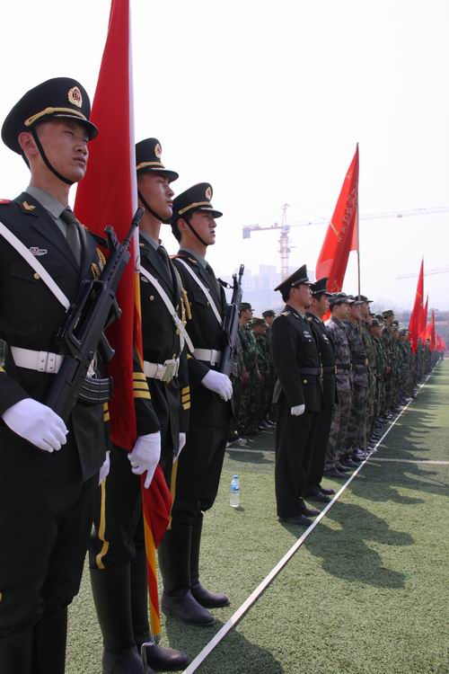 上午10時(shí),點(diǎn)驗(yàn)大會(huì)在嘹亮的軍歌聲中拉開(kāi)序幕。預(yù)備役官兵軍容嚴(yán)整,雄姿勃發(fā),精神抖擻,士氣高昂,充分展示了當(dāng)代預(yù)備役軍人的良好精神風(fēng)貌,展現(xiàn)了部隊(duì)良好的軍政素質(zhì)和優(yōu)良的戰(zhàn)斗作風(fēng)。3名儀仗隊(duì)員護(hù)衛(wèi)著軍旗,邁著矯健的步伐從主席臺(tái)南側(cè)走到隊(duì)列北側(cè)。1500余人的預(yù)備役軍人身著整齊的軍裝,按照各自編制,在操場(chǎng)排成整齊的方隊(duì),接受了首長(zhǎng)的檢驗(yàn)并進(jìn)行了宣誓儀式。點(diǎn)驗(yàn)結(jié)束后,預(yù)備役官兵進(jìn)行了擒敵拳、盾牌警棍術(shù)和防爆隊(duì)形等三個(gè)科目的匯報(bào)演示。通過(guò)集結(jié)點(diǎn)驗(yàn),鍛煉提高了團(tuán)首長(zhǎng)機(jī)關(guān)和營(yíng)連各級(jí)指揮員的組織協(xié)調(diào)能力,探索研究了組織全團(tuán)集結(jié)點(diǎn)驗(yàn)的方法路子,錘煉了部隊(duì),強(qiáng)化了作風(fēng),有效提高了部隊(duì)快速動(dòng)員和隨時(shí)應(yīng)召的能力。