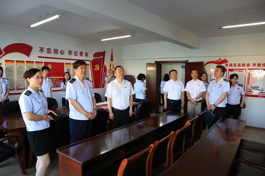 八月1日早上九點(diǎn),蘭州市稅務(wù)局機(jī)關(guān)第八黨支部和公司機(jī)關(guān)黨支部一行20余人來到西固區(qū)稅務(wù)局參觀黨建長(zhǎng)廊和第六支部的黨建陣地。參觀過程中,詳細(xì)介紹了西固稅務(wù)自機(jī)構(gòu)改革以來在黨建工作方面取得的成就、亮點(diǎn)和品牌文化,實(shí)地觀摩了支部黨建陣地建設(shè),查閱了學(xué)習(xí)基礎(chǔ)臺(tái)賬及相關(guān)資料,了解了黨建融合企業(yè)、黨員特色隊(duì)伍建設(shè)等新思路、新做法。參觀結(jié)束后,大家一致認(rèn)為,西固稅務(wù)黨建文化陣地特色濃,黨建服務(wù)品牌標(biāo)識(shí)亮,讓參觀人員內(nèi)心既受到震撼,思路又進(jìn)一步得到拓寬。