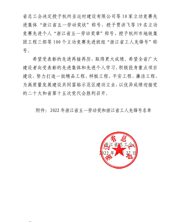 4月27日,我司新建浙江麗水機(jī)場(第一批)02 標(biāo)段項目部榮獲“浙江省工人先鋒號”稱號。
