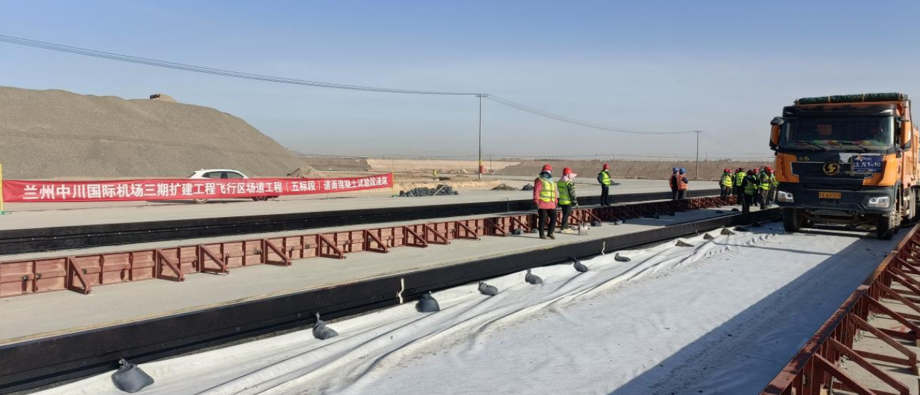 4月20日,由我司承建的蘭州中川國際機(jī)場三期擴(kuò)建工程飛行區(qū)場道工程(五標(biāo)段)道面混凝土試驗(yàn)段正式開倉澆筑。