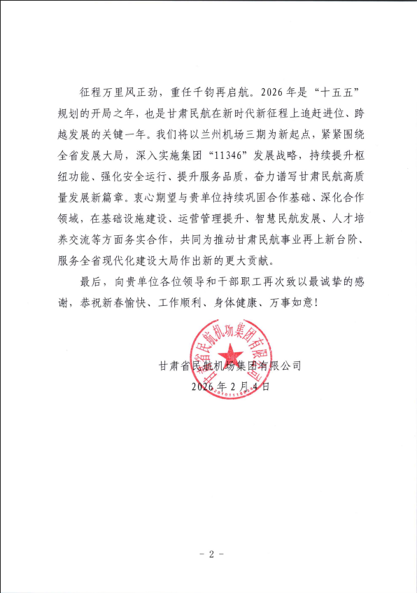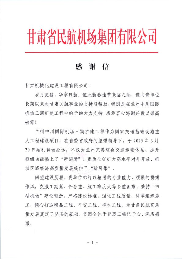 兩封感謝信,既是對項(xiàng)目團(tuán)隊(duì)攻堅(jiān)克難、實(shí)干擔(dān)當(dāng)?shù)某浞挚隙?,更是對我司綜合實(shí)力與專業(yè)能力的高度認(rèn)可。我司將以兩大機(jī)場項(xiàng)目為新起點(diǎn),持續(xù)深化合作、精益求精,以更高標(biāo)準(zhǔn)完成各項(xiàng)工程任務(wù),為民航及基礎(chǔ)設(shè)施建設(shè)事業(yè)再立新功。