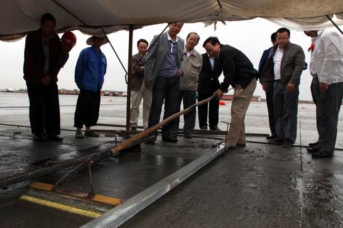 2010年8月20日上午10時,金昌機場飛行區(qū)停機坪混凝土道面工程順利封倉。甘肅省交通運輸廳、金昌市政府、甘肅機場建設投資管理公司、甘肅機場項目建設指揮部及施工單位等有關單位領導現(xiàn)場見證了道面工程順利封倉的時刻。