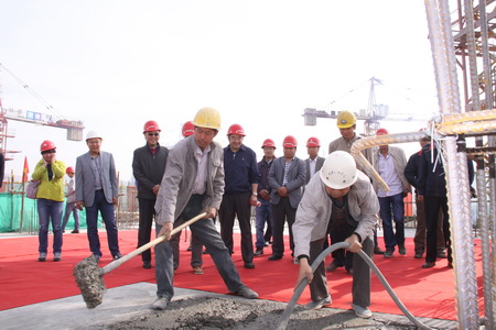 甘肅政法學院保障性住房項目1#樓主體結構于2015年9月17日順利封頂,施工現(xiàn)場舉行了簡短的封頂儀式。參加封頂儀式的有甘肅政法學院黨政主要領導、部門負責人、住戶代表、監(jiān)理單位工作人員,公司董事長陳想蕃也應邀出席。此外,參加儀式的還有承擔該項工程項目建設的全體人員。在施工現(xiàn)場,業(yè)主單位對該項目在安全、質(zhì)量、文明施工等方面所做的工作給予了充分肯定。